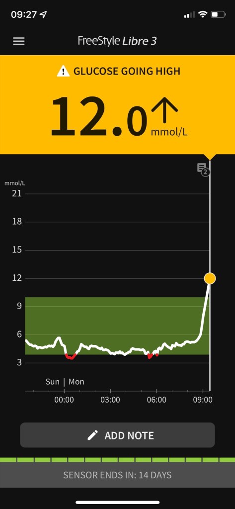 After reaching 12 mmol it started going down slowly. The app for glucose monitoring is different from the ZOE app but it is connected to ZOE system so that they can track your levels too.